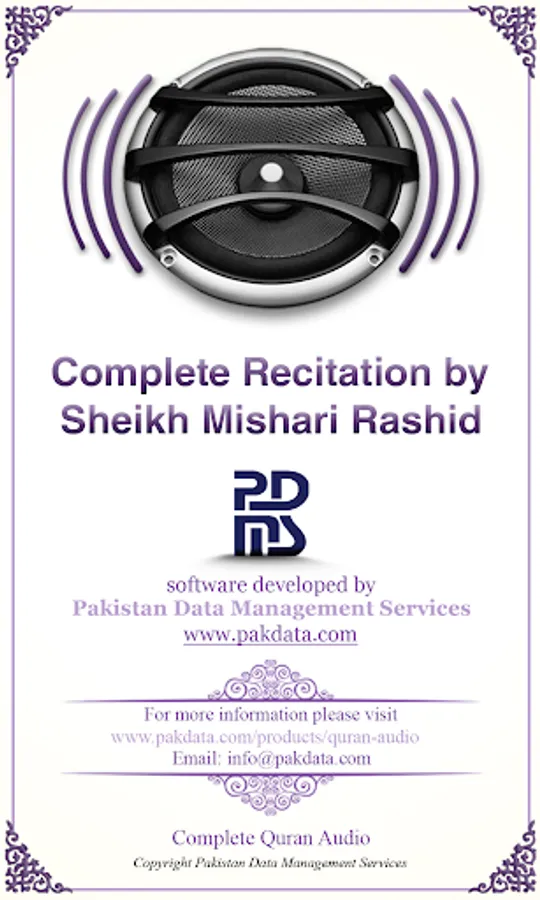 This app provides complete and high quality Quran audio recitation of Sheikh Mishary Rashed Alafasy and is compatible with Quran Majeed 2.0 app.