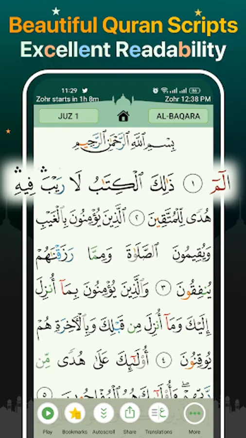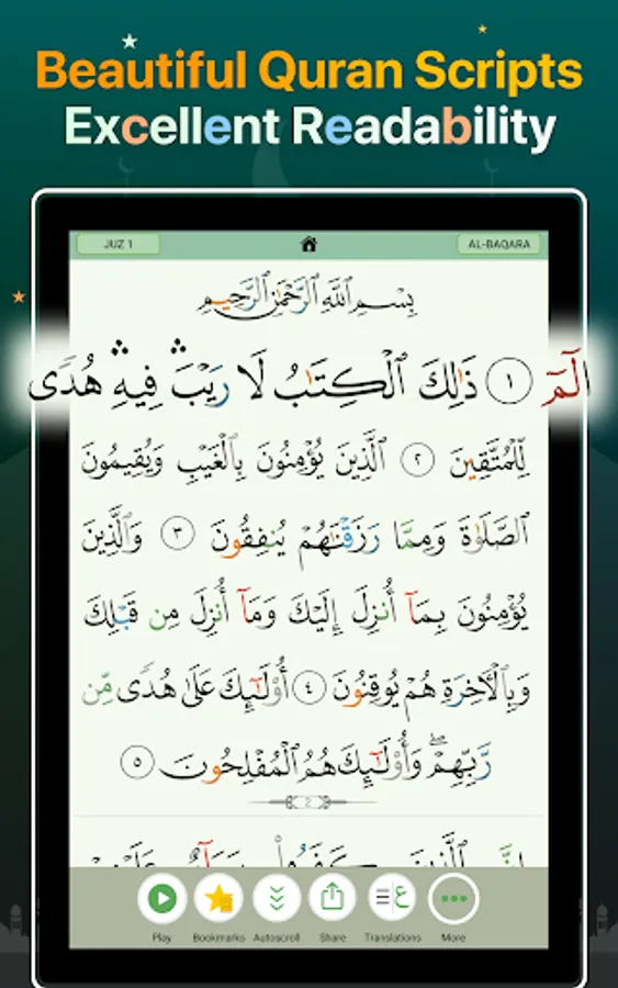 The latest version of the authentic Quran Majeed app for Android offers complete Quran in elegant Uthmanic, Mushaf and Indo-Pak scripts that have been proofread by a Muslim Islamic scholar (Alim), multiple audio recitations and translations.