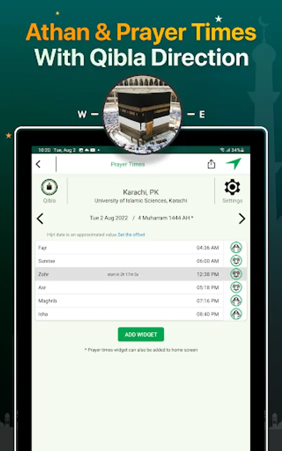 ● Worldwide Prayer Times (Salah/Namaz) clock with Athan alarm options. Supports different prayer time calculation methods. Provides detailed Ramadan Sehar & Iftar times