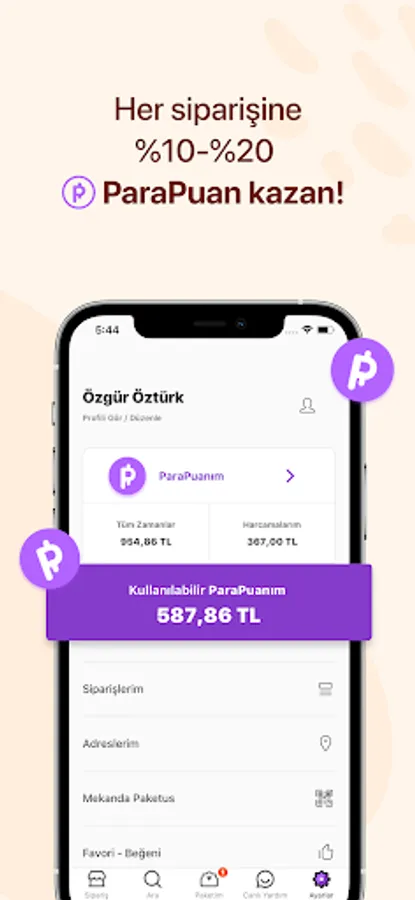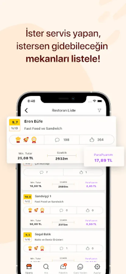 Damak zevkine hitap eden ve gününü güzelleştirecek tüm yemek siparişlerinden en az %10 en çok %20 ParaPuan kazanacak ve kazandığın bu ParaPuan'ları aynı işyerlerinden oluşturacağın siparişlerde dilediğince harcayabileceksin.