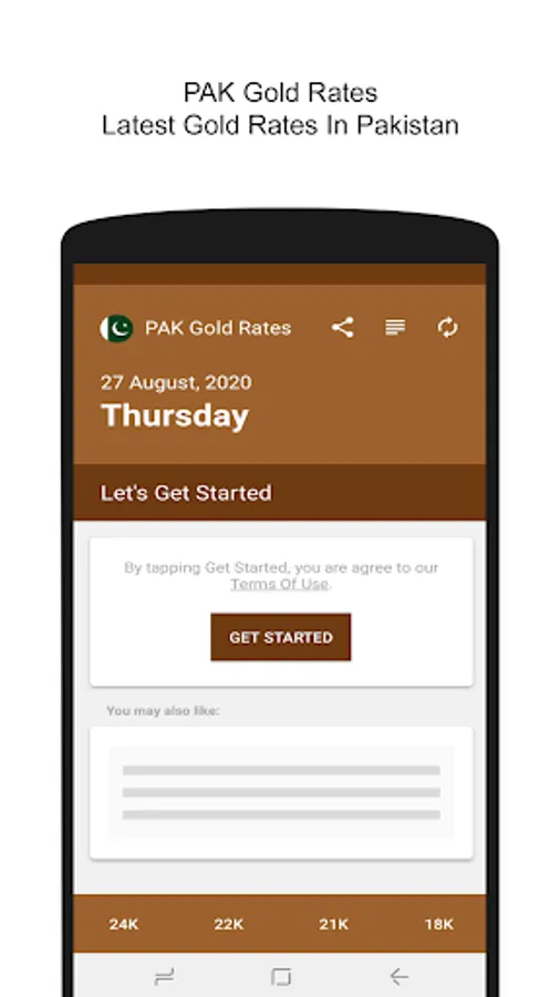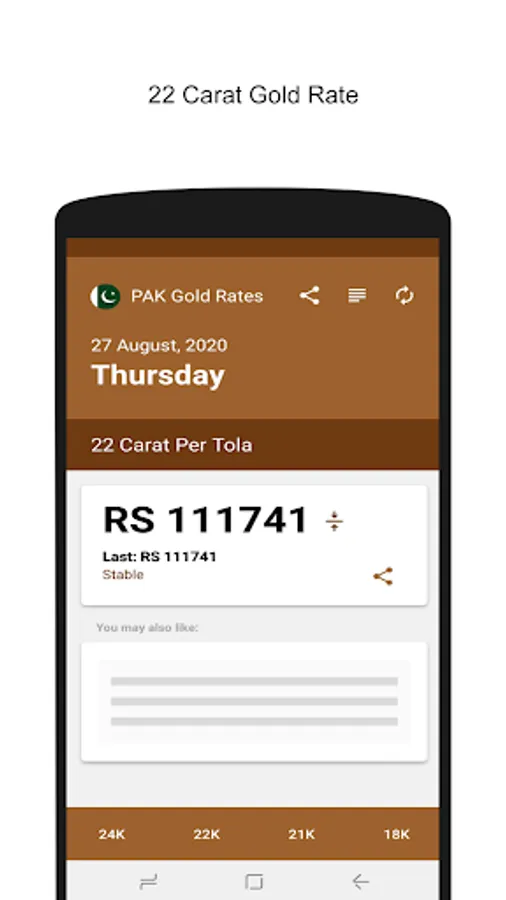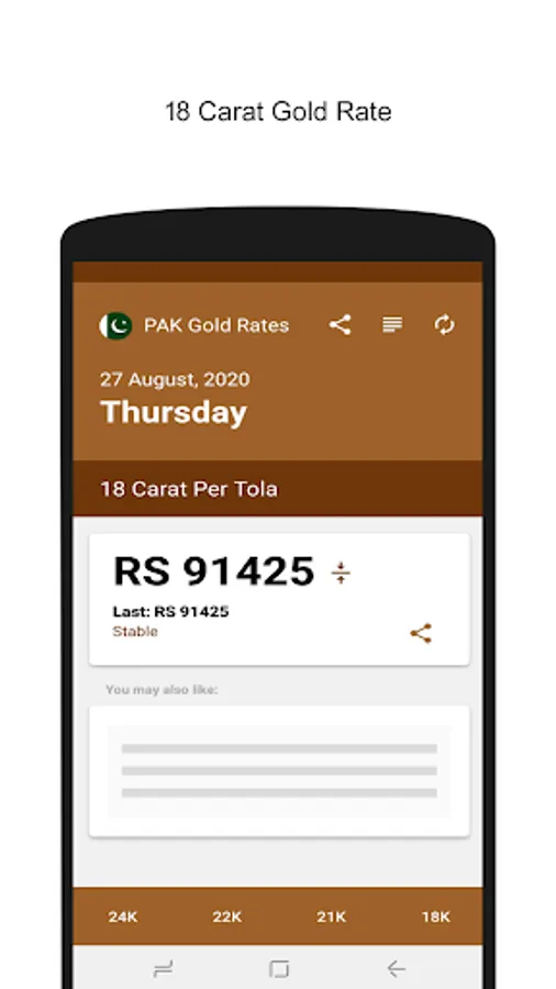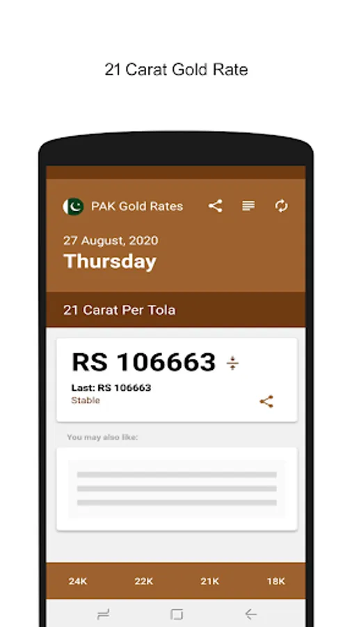 Display latest and live gold rates for 24, 22, 21 and 18 carat.