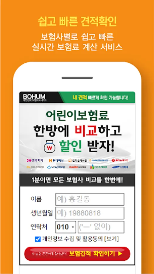 Real-time child insurance comparison service helps you sign up for child insurance at a reasonable price. You can check the insurance premiums for children from over 30 insurance companies in real time. With one click, you can use real-time insurance premium calculation service quickly and easily. Compare and check popular insurance products from excellent domestic insurance companies. Nonghyup Children's Insurance Children's Insurance Popularity Ranking 100-year-old app will help you systematically from sign-up to compensation!