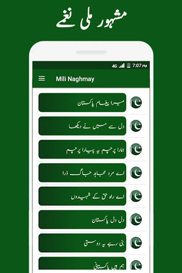 It also include latest milli songs by best singers of Pakistan, Listen your favorite songs.