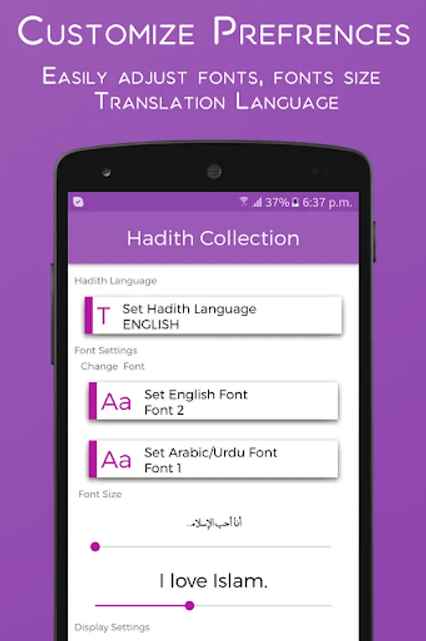4. Adjustable font size for both Arabic and translation.