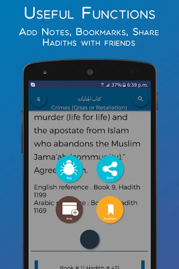 5. Share option lets one to distribute beautiful hadiths with loved ones.