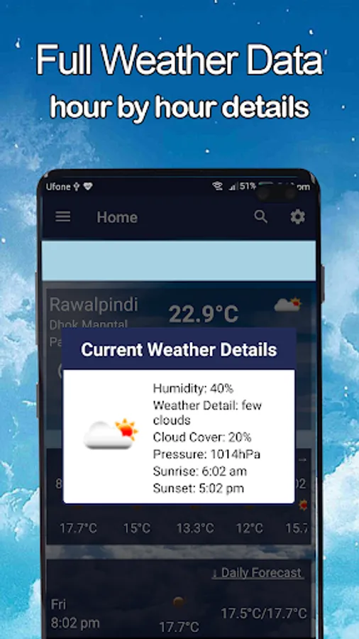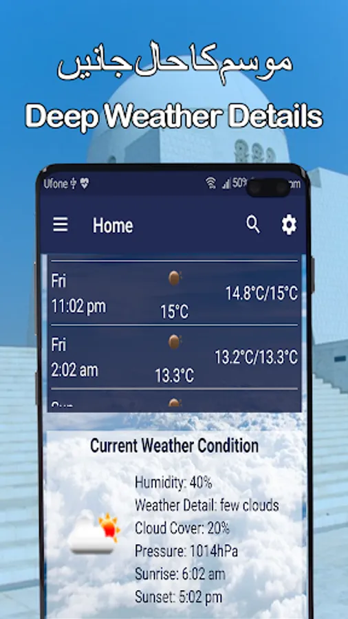 Mosam ka haal janiye, hamari assan Weather application say. Ab aap apny Shehar ka Mosam Janiye bilkul free. Abhi app Download Karain.