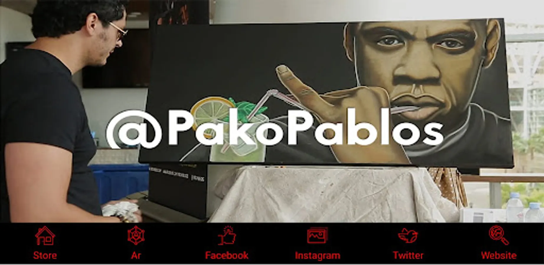 Obtain access to AR capabilities of famous artist Pako Pablos merchandise line, visit his shopping website and access to new artwork, events and news.