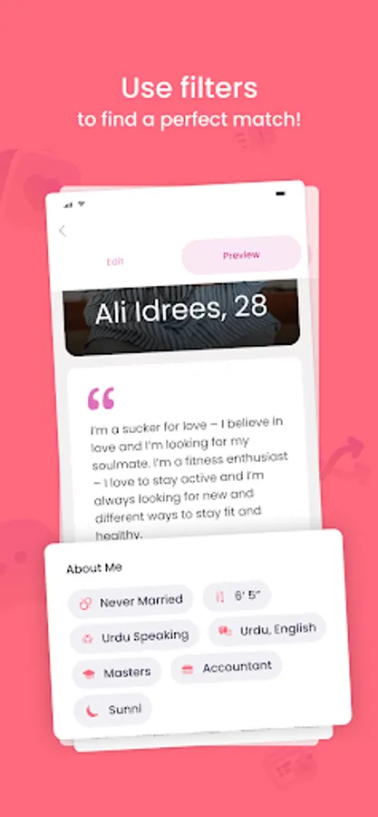Looking for the perfect Muslim partner? We bring to you the modern matrimony app “PakPair” to help you find your ideal match based on the same hobbies and interests. This app uses unique techniques and a sophisticated system to identify what you like and get you closer to matching with your ideal mate. PakPair creates the opportunity for you to connect with people of your love interest over the internet, with the intention to get married.
