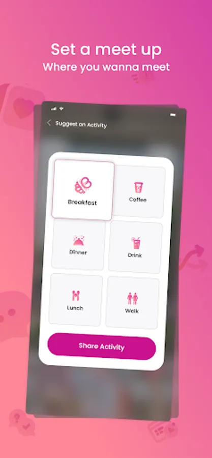 • Set up meetups by viewing a list of restaurants around you and activities to do together.