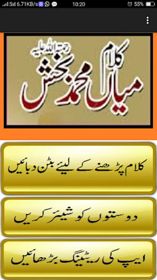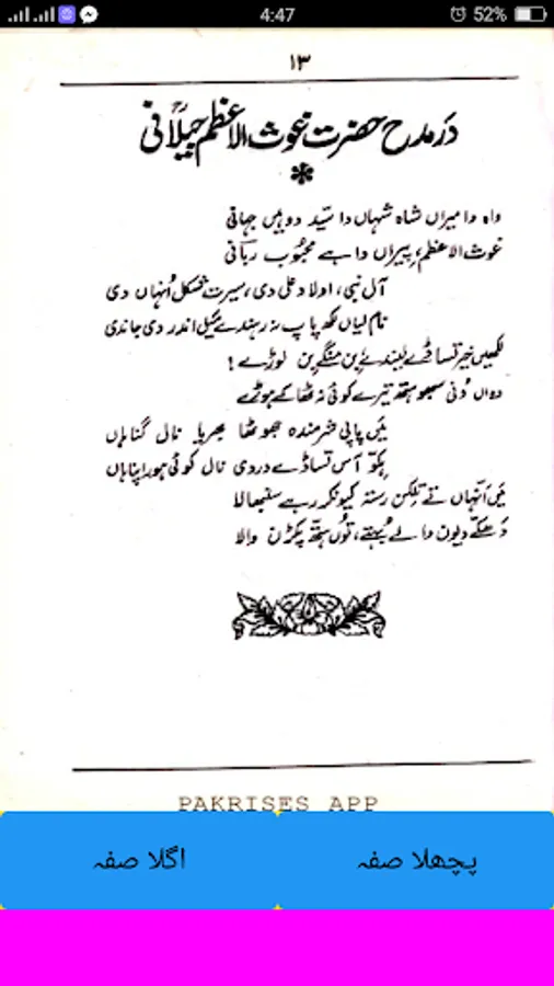 Mian Muhammad Bakhsh was a sufi hindko and Punjabi poet. He belonged to the qadiri tariqah. He is especially renowned as the writer of a book of poetry called saiful malook the tail is about a prince shahzada saiful malook. The prince fell in love and saw in dream. She was called badi u jamal. Kalam Mian Muhammad Bakhash easy to read and knows for everyone.
