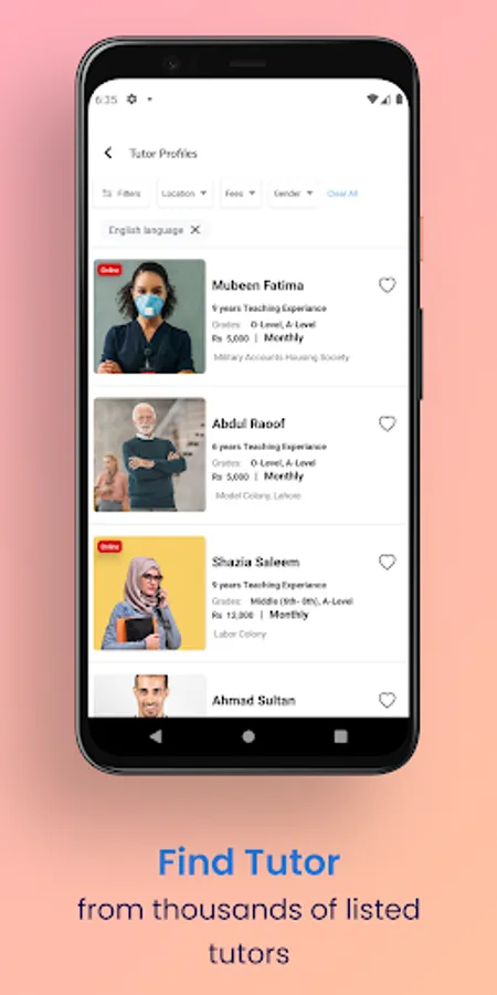 - With Paktutorr App you can filter your search for Abwaab and Edkasa app tutor based on different gender