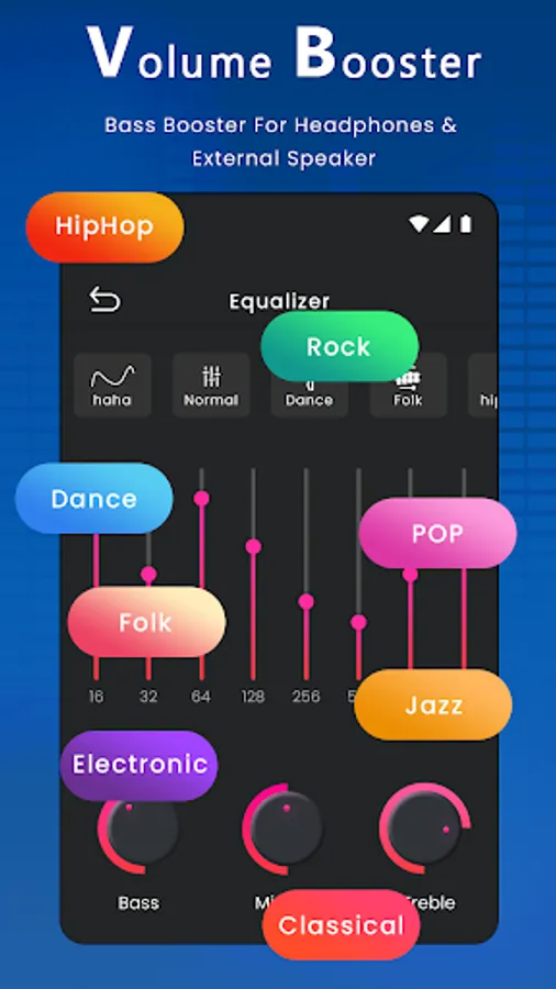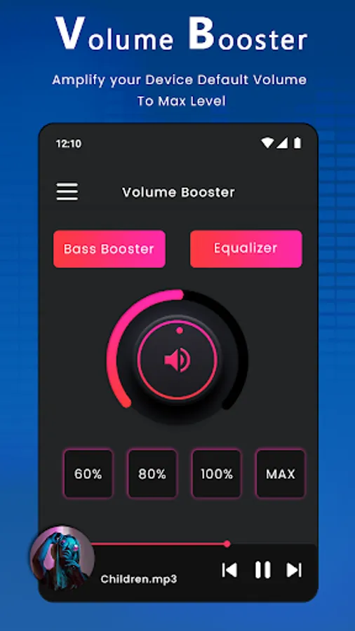 Music Equalizer - Extra Volume Booster, a max volume booster for android with music equalizer and bass booster is able to boost volume of your phone and tablet louder, improve your music quality and amplify bass.