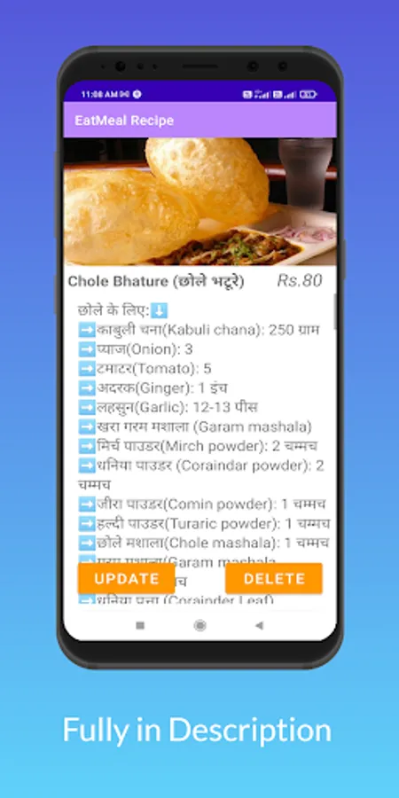 There are all kinds of food hindi recipes, though, including healthy Morning Muffins and all recipes have full instructions and ingredients list. There are recipes that families will like, such as smoothies (with white tea and strawberries), Drinks, breakfasts with sprouted grain muffins and Laddu or Chaat, Pizza and things kids like.