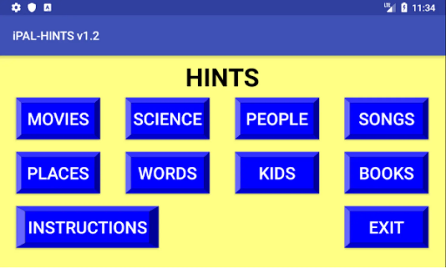 There are 8 subjects of play in the game - BOOKS, KIDS, MOVIES, PEOPLE, PLACES, SCIENCE, SONGS and WORDS - with thousands of answers!
