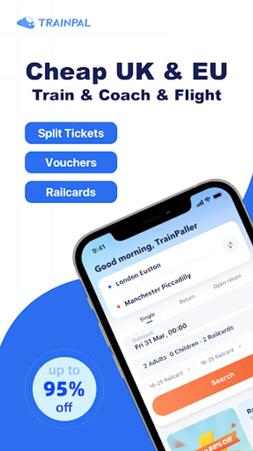 • Discounted fares: TrainPal supports all Railcards and helps you find the best deal for train tickets online.