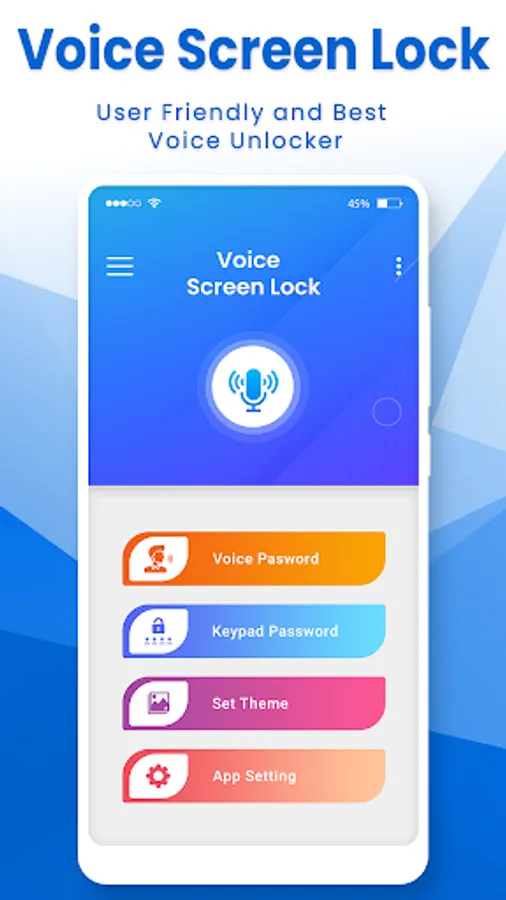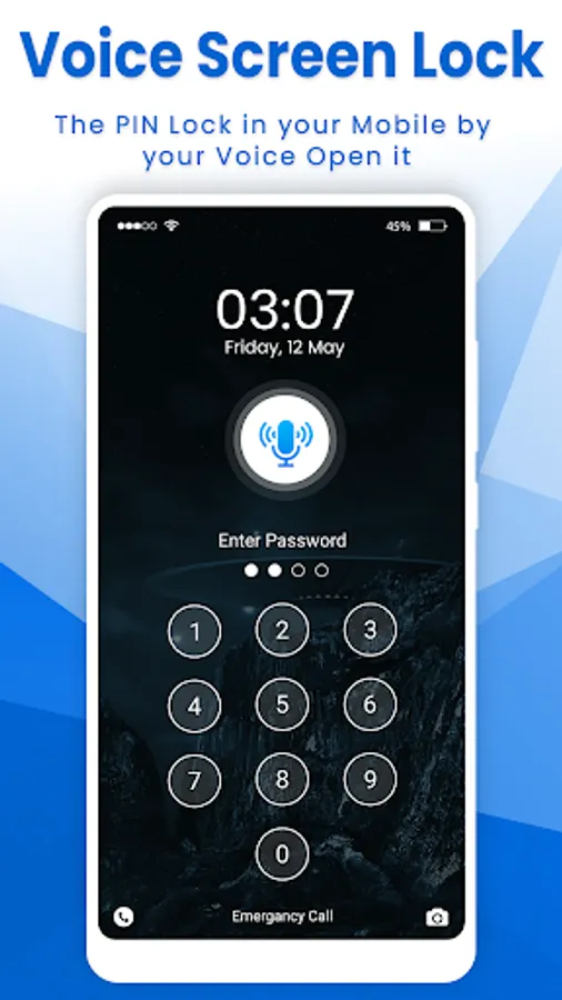 Voice Lock Phone - Smart Voice Lock Screen application through you gets totally new style lock screen just you speak your password and open your lock. This Best Voice Lock Screen app works on with your voice commands which makes your phone unique from others also we have provided a Keypad Lock screen method with this voice lock setting App!