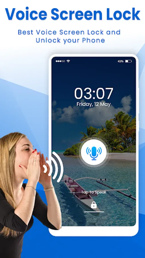Voice Screen Lock : Unlock Screen With Voice Command is an amazing new application which allows you to unlock your phone using voice command. Speak and unlock your device using your voice set password.