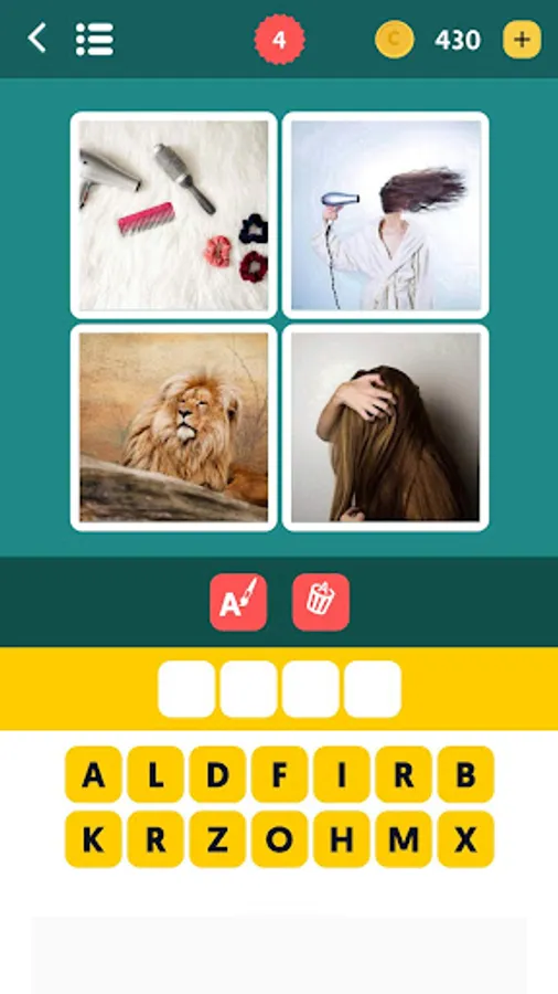 The rules of the game are simple. You are presented with 4 pictures and you have to guess the word that connects them. You can use the letters provided to form the word. If you're stuck, you can use coins to buy hints. The game becomes more challenging as you progress through the levels.