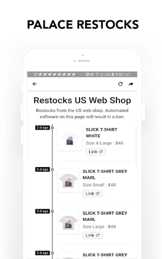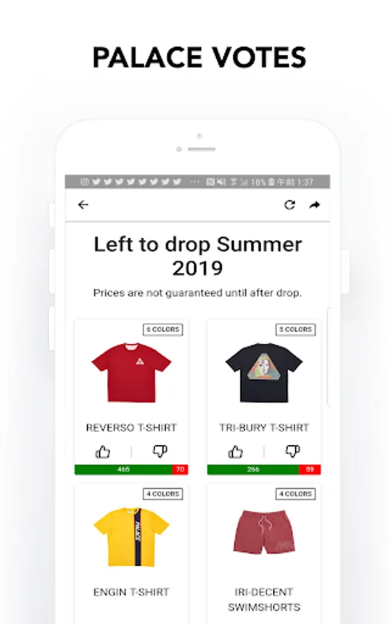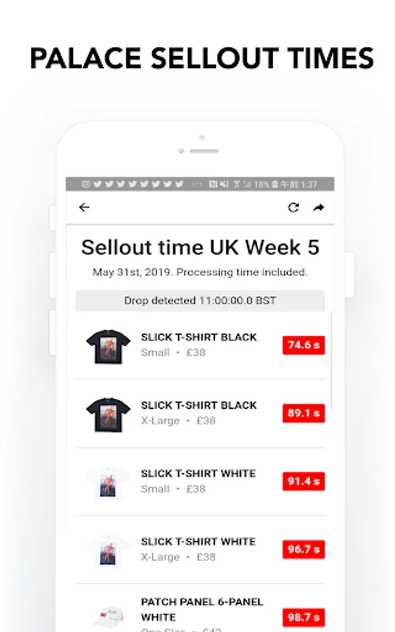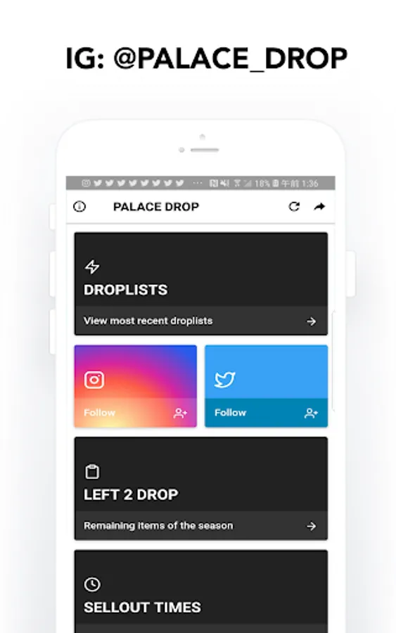 Palace Drop (palacedrop.com) is a community for Palace Skateboards fans. Here you can find everything from upcoming week's droplists, sellout times in UK, US and JP, votes for both styles and colors, free restock monitors for online stores, and much more.