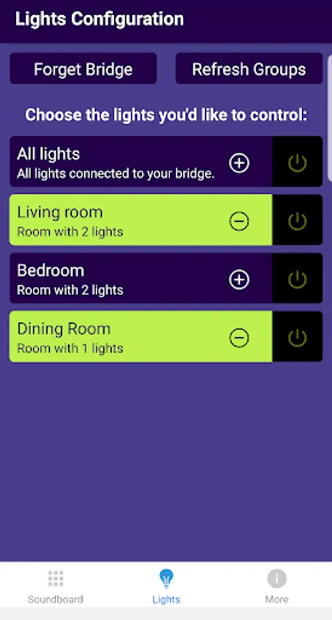 Choose which rooms are affected, unaffected or off using Lights Configuration.