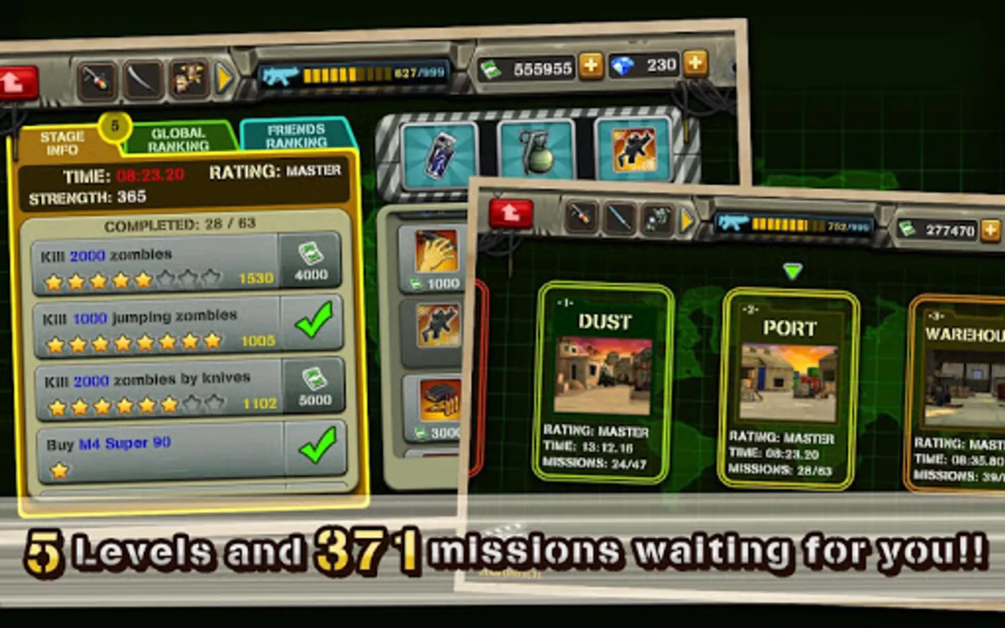 Variety of weapons available for players with special gun effects such as burning, freezing, lightning, attracting zombies to stop actions by feeding them…etc. Weapons capable of upgrading to increase the fighting abilities largely.