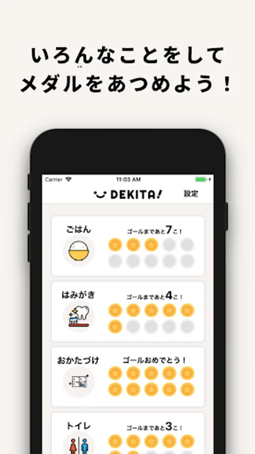 DEKITA! [I was able] is an application that can give medals of rewards to children who did their best.
