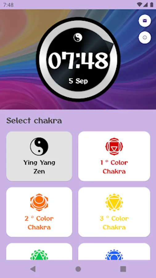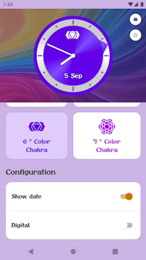 Take the power of colors with you everywhere. Select the color corresponding to each chakra you want to stimulate at every moment of the day. You cannot miss this dial for your Wear OS watch.