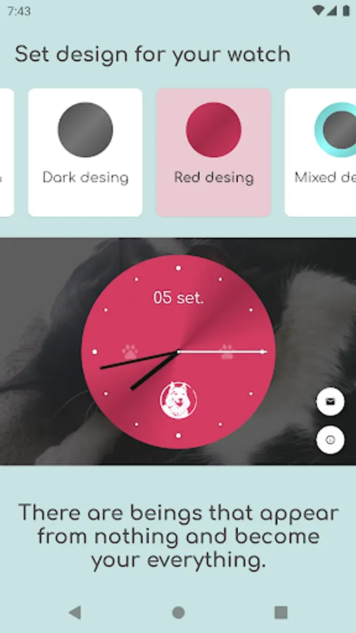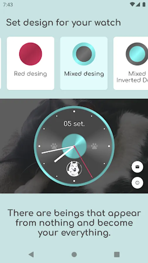 Enjoy the different designs offered by this phase watch for Wear. There are seven different designs that you can exchange whenever you want.