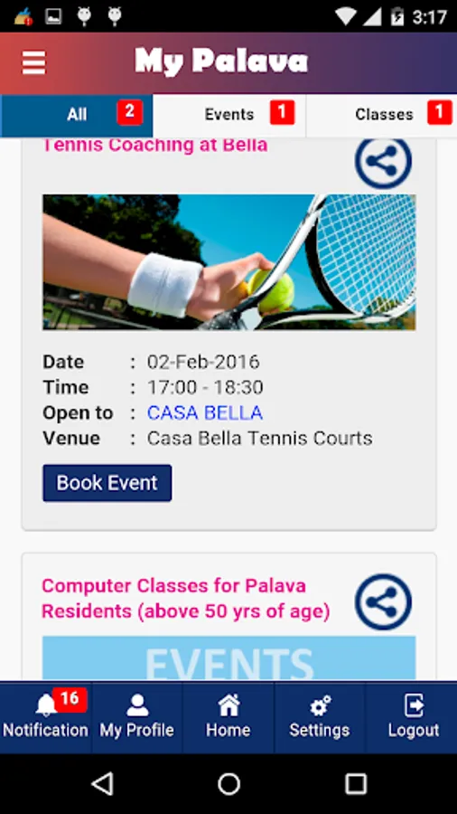 3. Register for upcoming events/classes in Palava