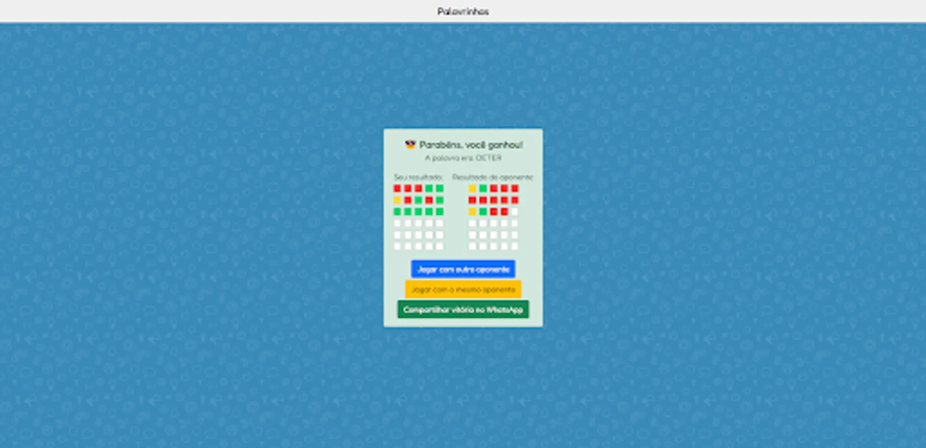 Palavrinhas is a game inspired by "Wordle", only online!