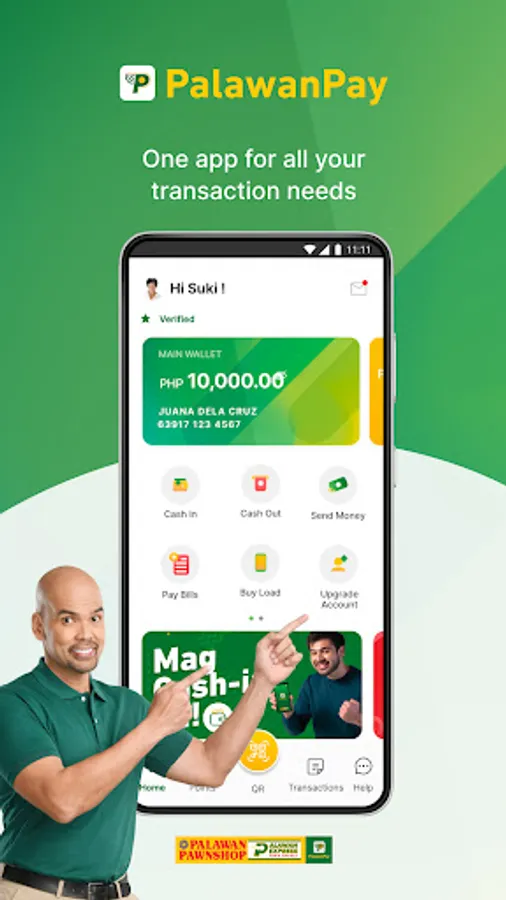 Ito na ang inaabangan mo, suki! Ang PalawanPay ay isang mobile wallet na handog ng Palawan Pawnshop Pera Padala Group. Sa PalawanPay, pwede ka magCash-In, Cash Out, Pera Padala, tumanggap ng pera, bumili ng load, magbayad ng bills at magbayad gamit ang QR code anytime at anywhere.