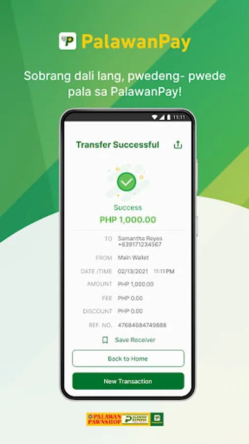 • Wallet to Wallet sa PalawanPay app users 24/7