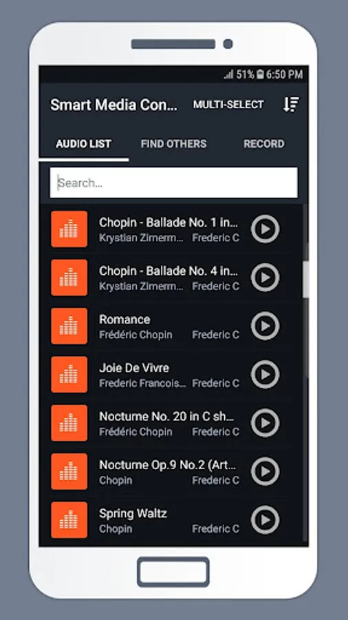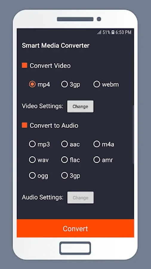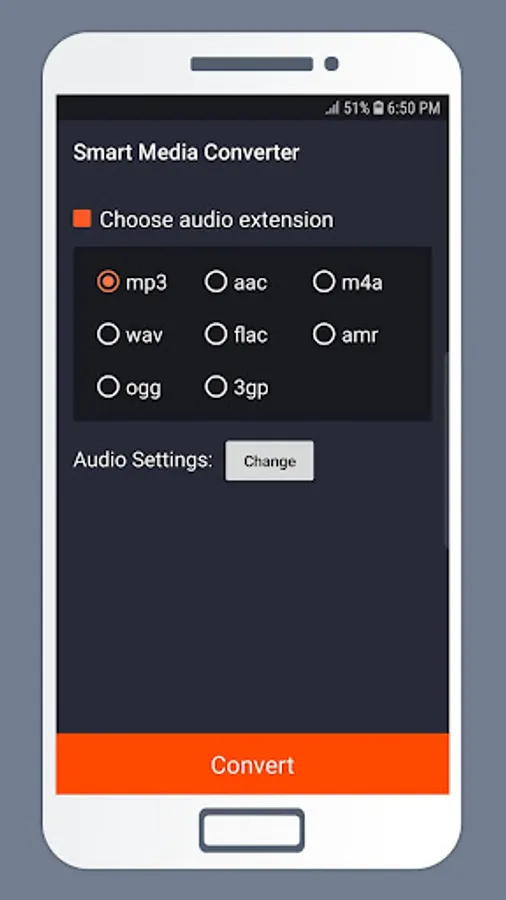 You can convert all audio files to the popular formats: mp3 ، aac ، m4a ، wav ، flac ، amr ، ogg ، 3g. In addition, you can choose the resultant audio file settings.