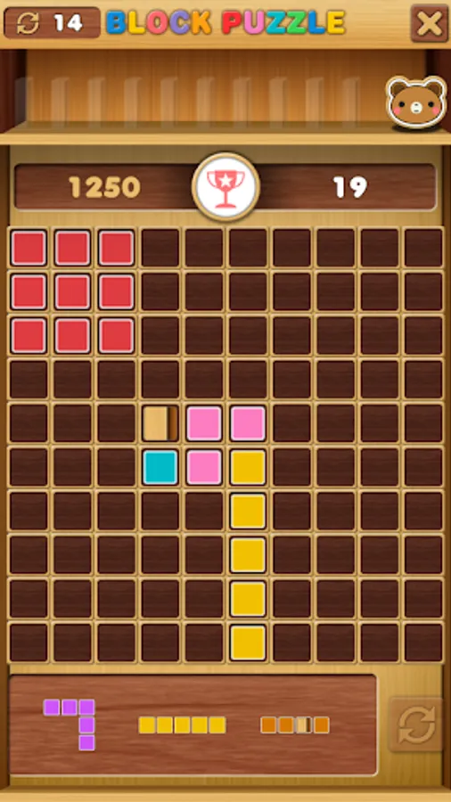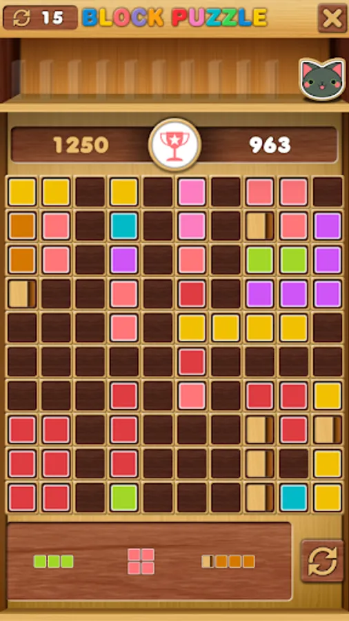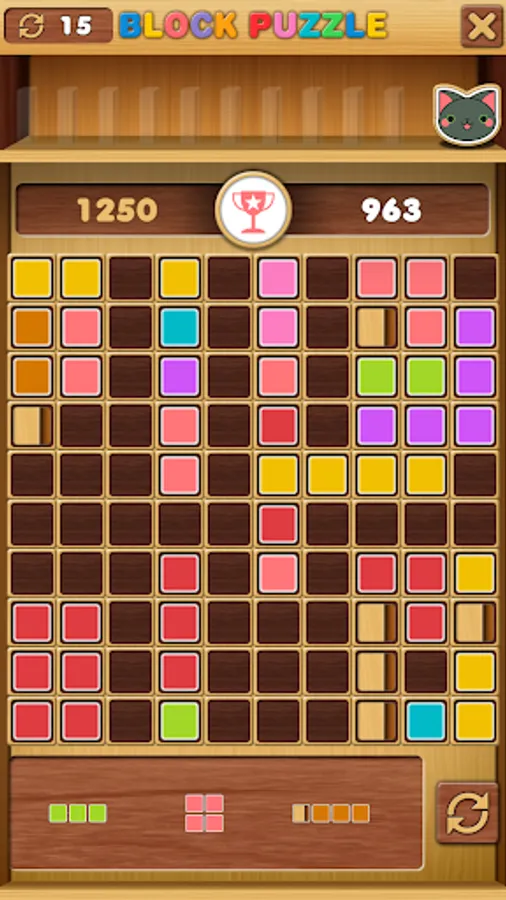 Block Puzzle is a simple puzzle game of matching and eliminating horizontal and/or vertical lines. Drag the newly generated blocks and match horizontal and/or vertical lines so that the screen does not get filled up with blocks.