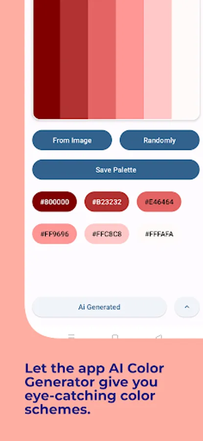 Let the app's AI Color Generator inspire you with its ability to generate harmonious and eye-catching color schemes. Simply input a base color or use a color code, and watch as the AI algorithm generates a curated palette of complementary shades and tones. Explore the vast possibilities and find the perfect colors that speak to your artistic vision.