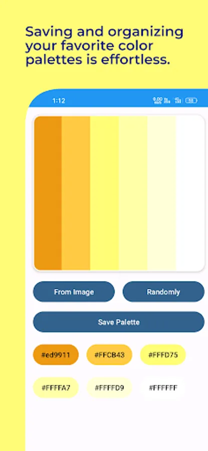 Embrace the power of color, ignite your creativity, and create visually captivating designs with the Color Palette Generator app. Elevate your projects and let your imagination soar with the perfect palette of colors at your fingertips.