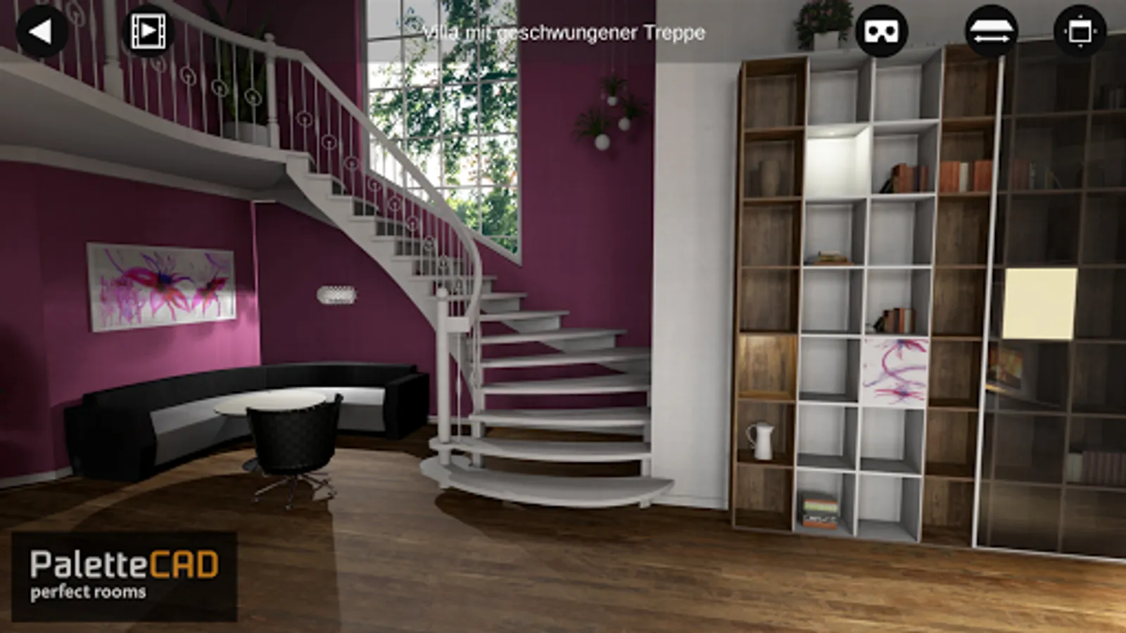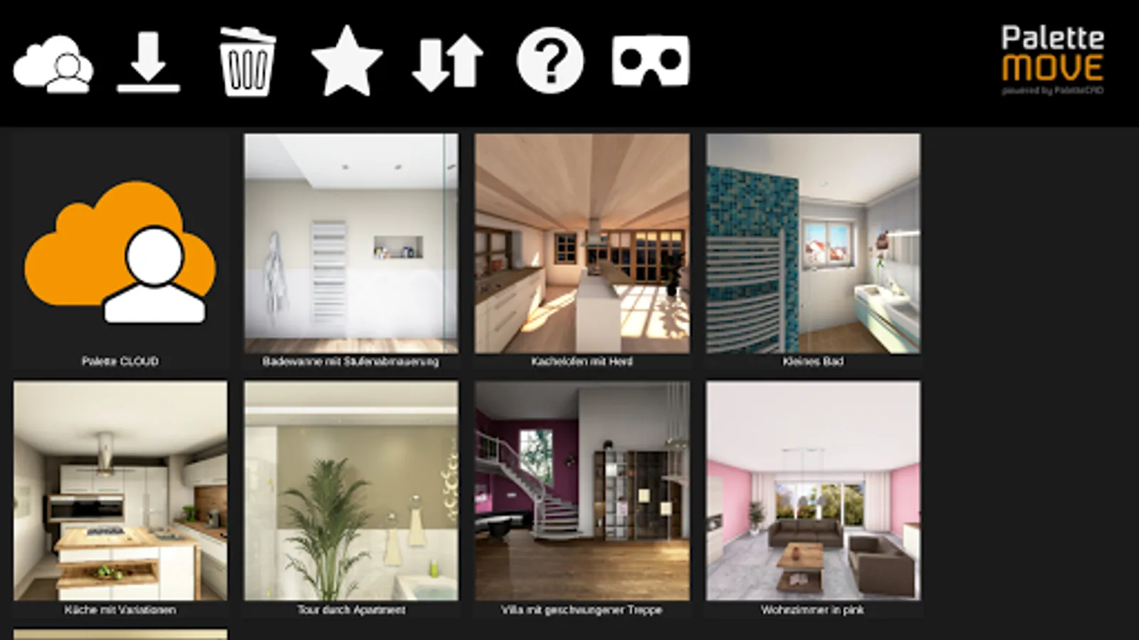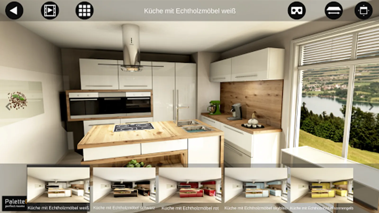 Although the app contains many sample scenes, the main task of the app is to display scenes you created yourself with our PC software ‘Palette CAD’ and to use this app as a presentation tool to show to your customers.