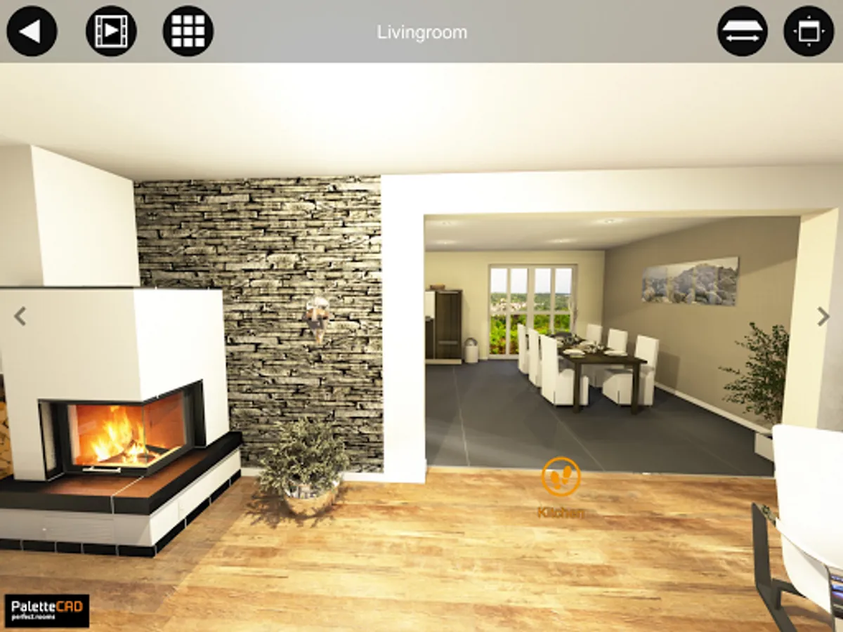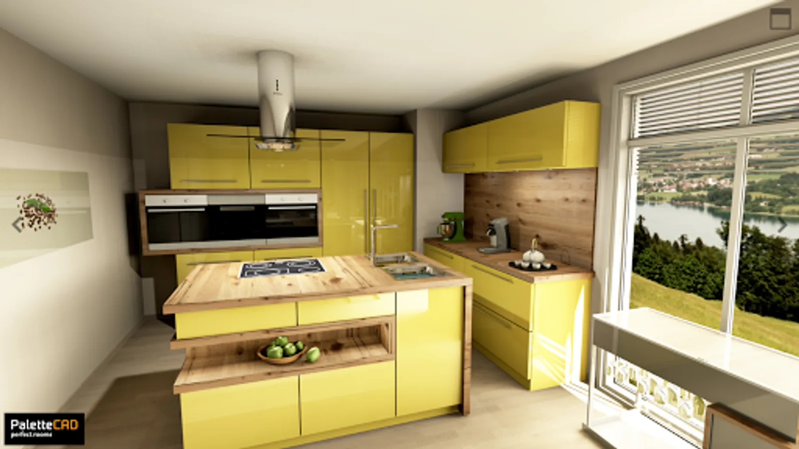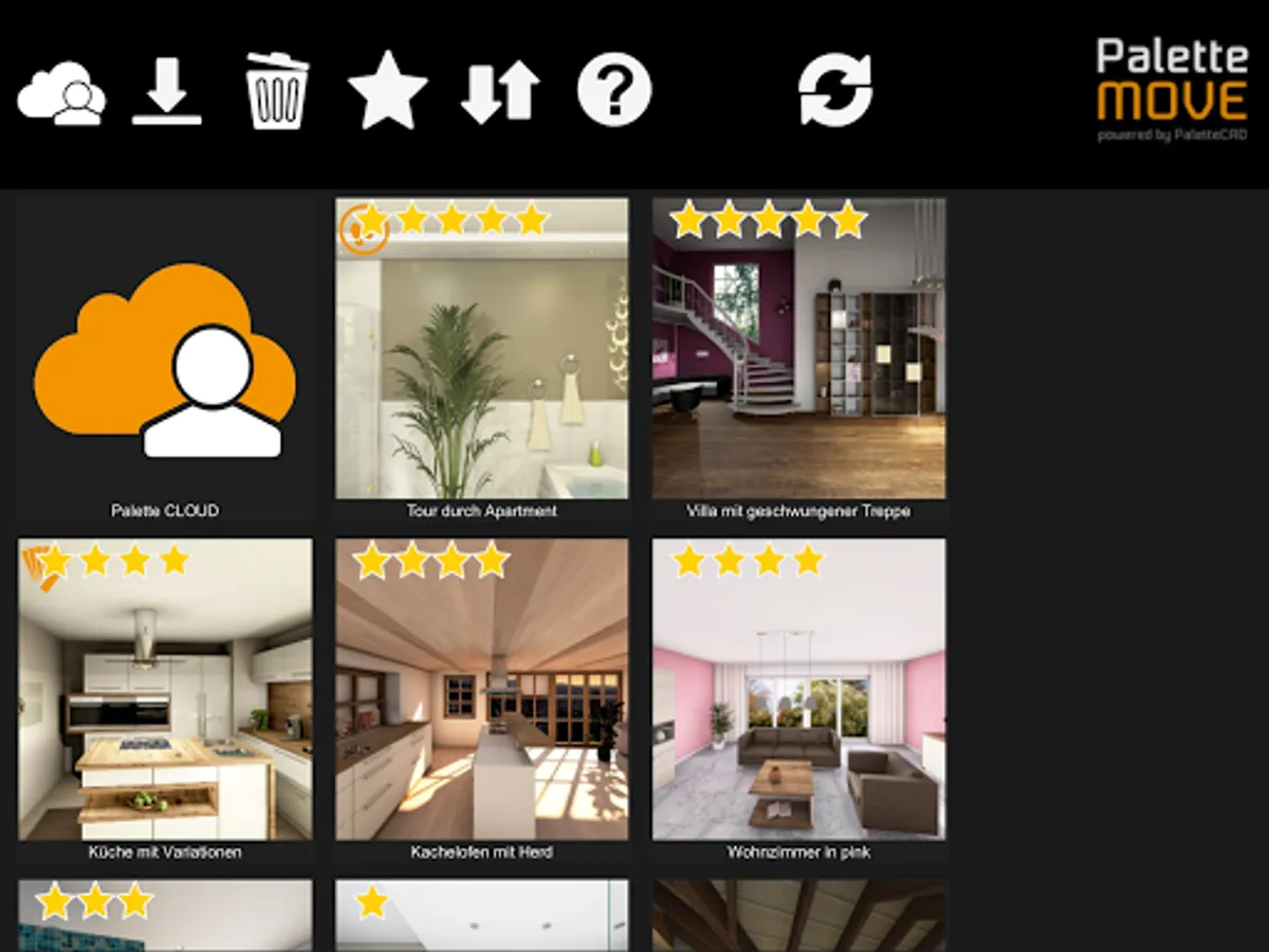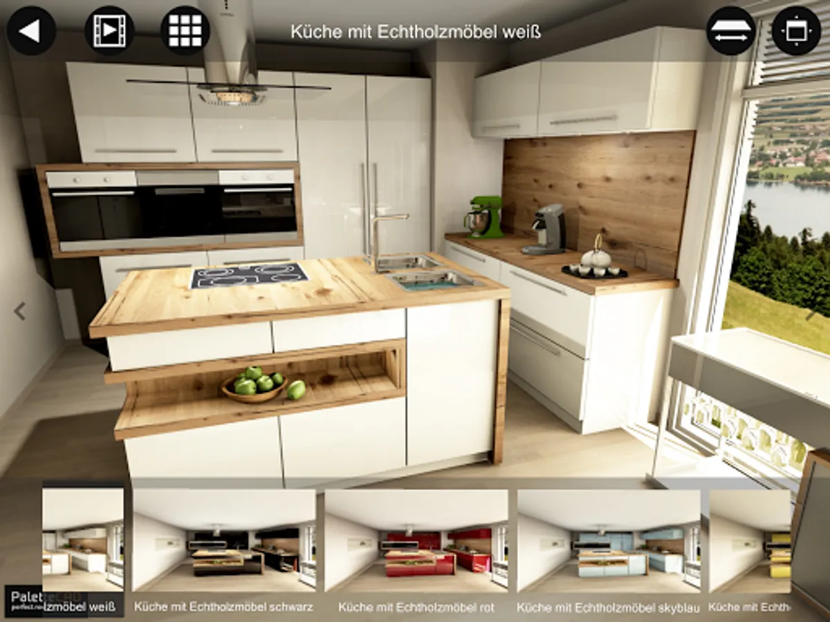 Although the app contains many sample scenes, the main task of the app is to display scenes you created yourself with our PC software ‘Palette CAD’ and to use this app as a presentation tool to show to your customers.