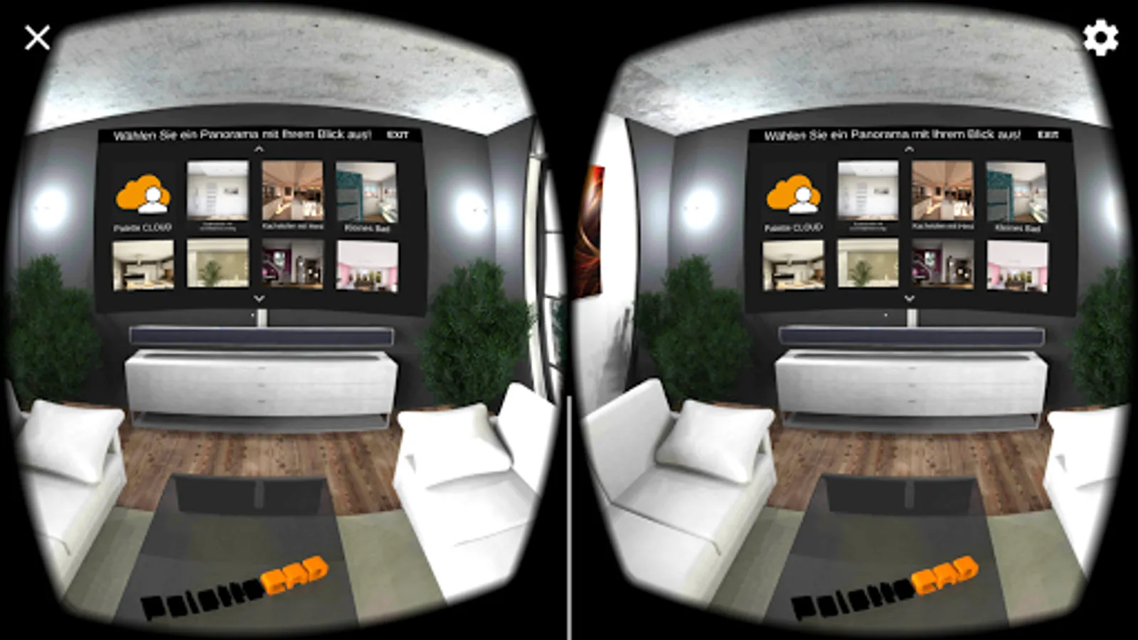 Once you’ve switched to Virtual Reality mode you can operate the app by just using head movements to focus on the interactive GUI elements. You can select, enter and leave panoramas and also exit the virtual reality mode again without any other input device other than the VR glasses.