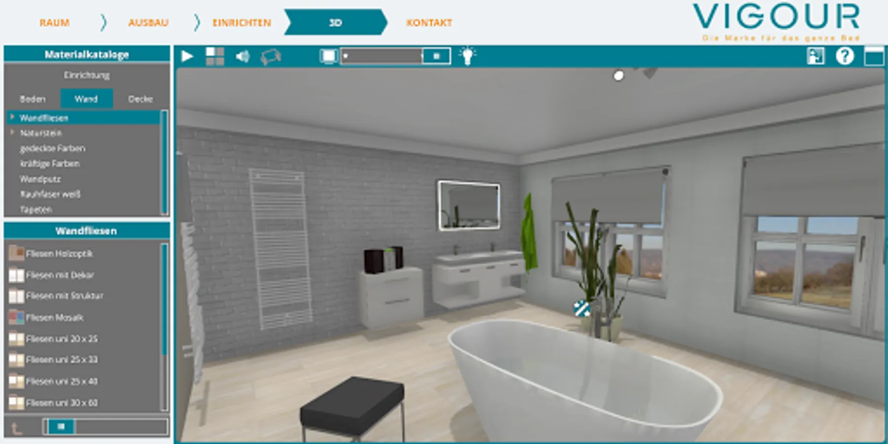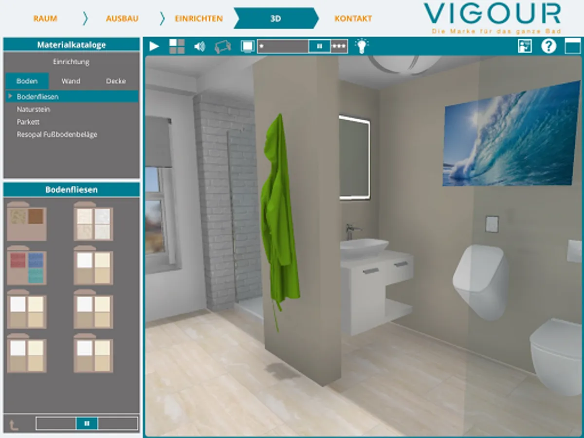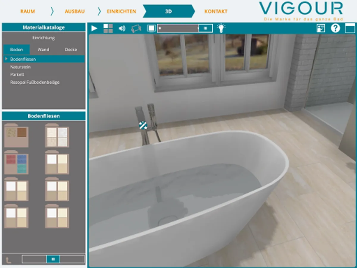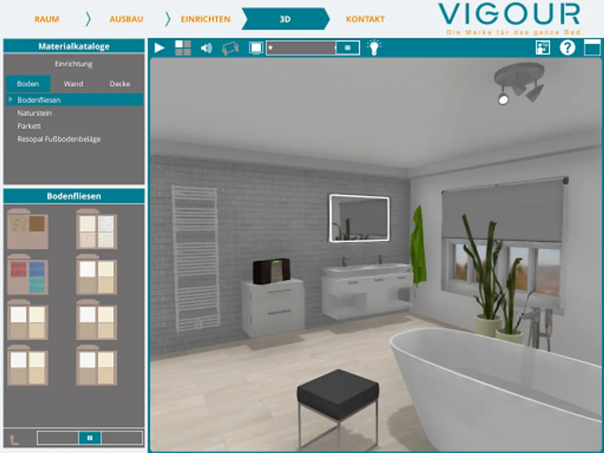 You can also select tiles and wall coverings in the virtual bathroom according to your wishes.