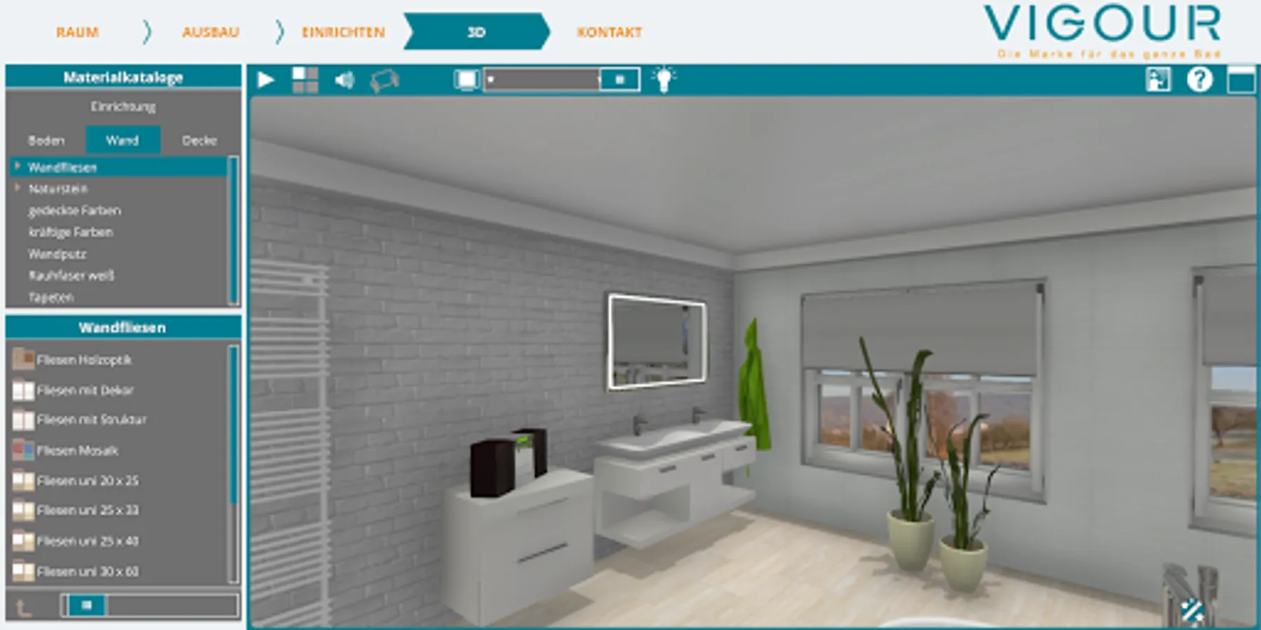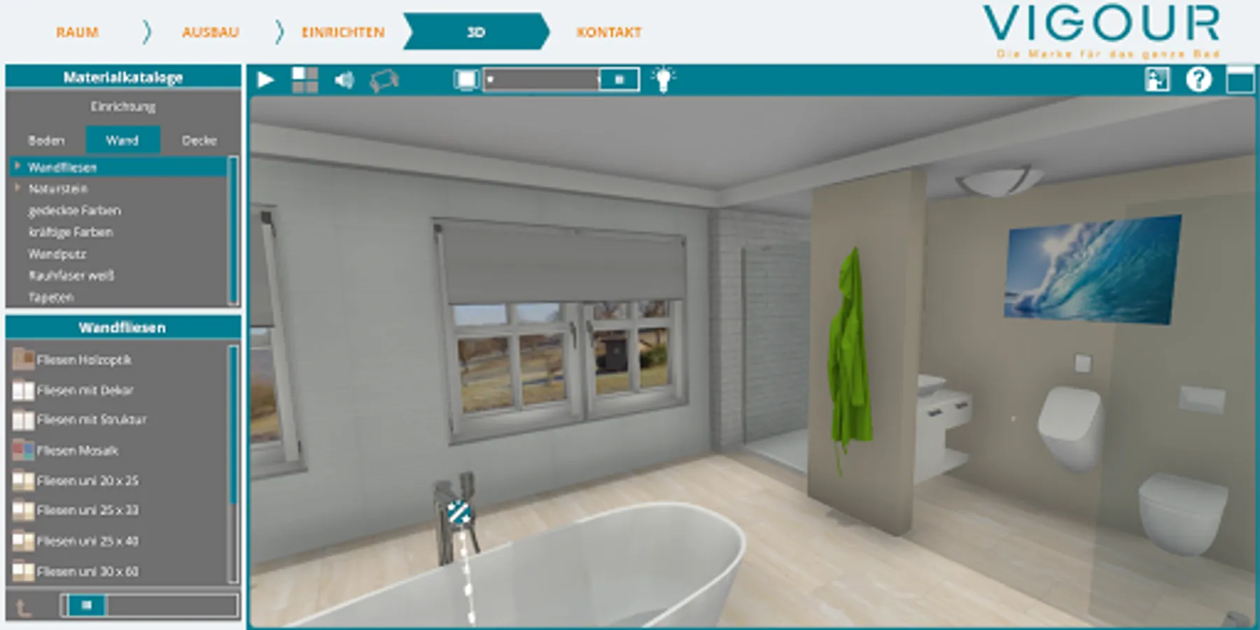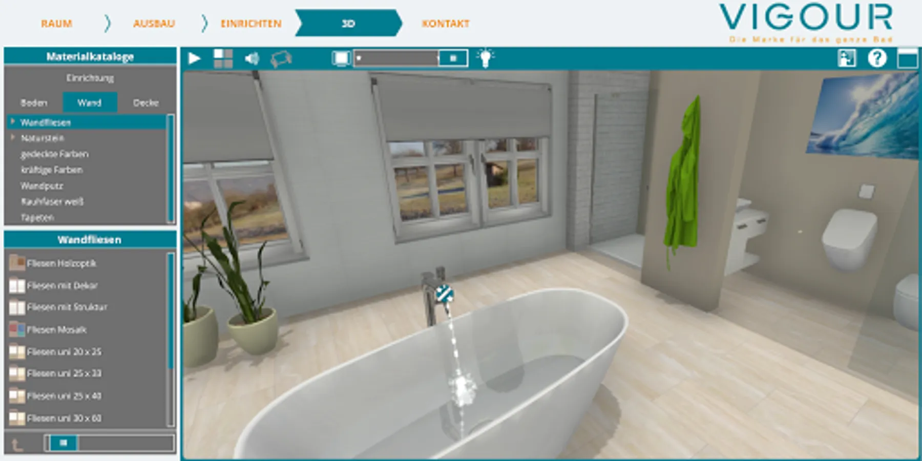 You can also select tiles and wall coverings in the virtual bathroom according to your wishes.