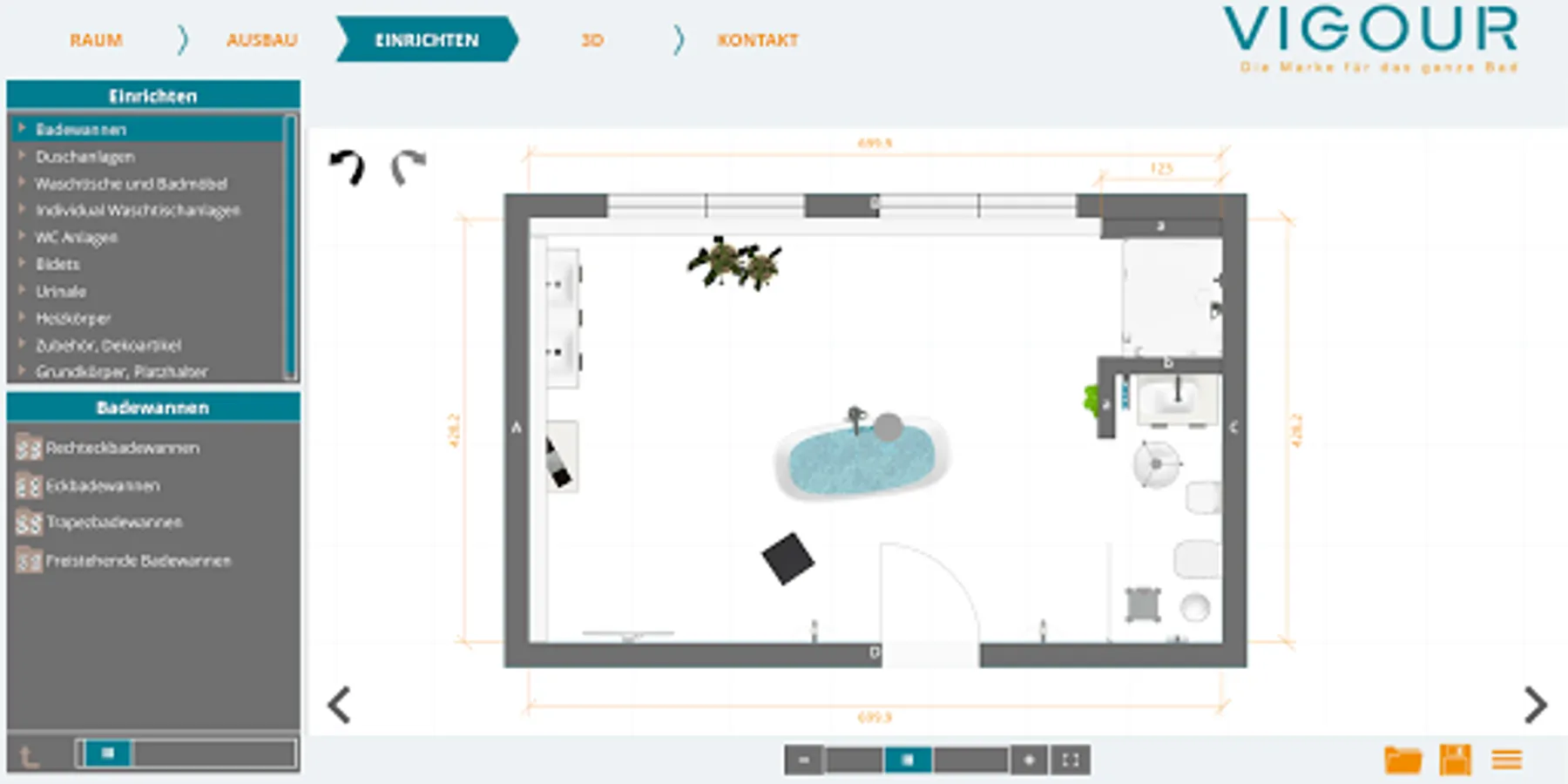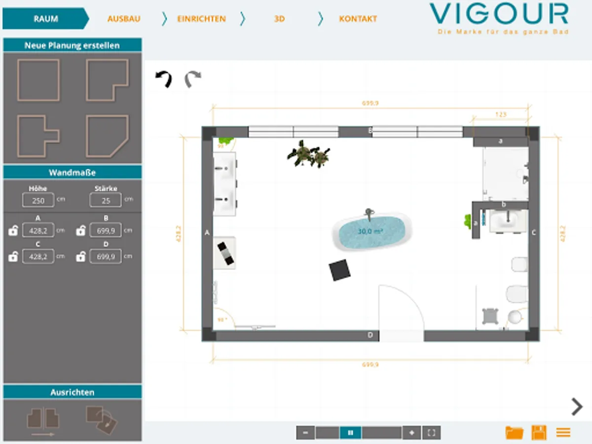 With the VIGOR bathroom planner, you can plan your future bathroom online from home and thus incorporate all your wishes.