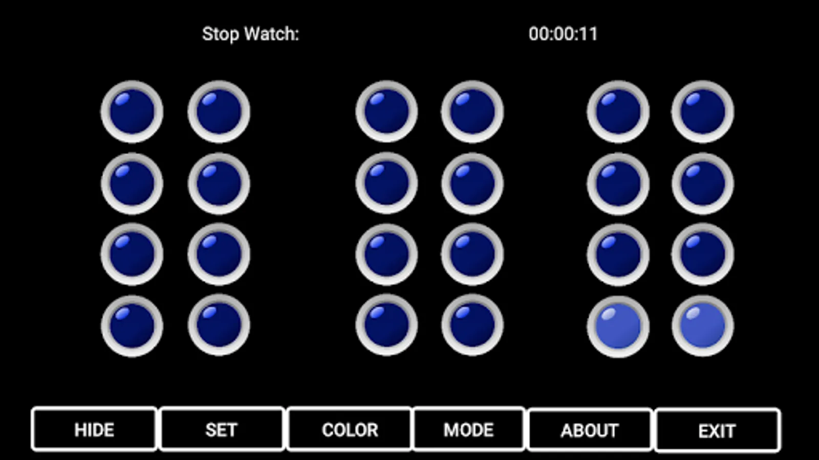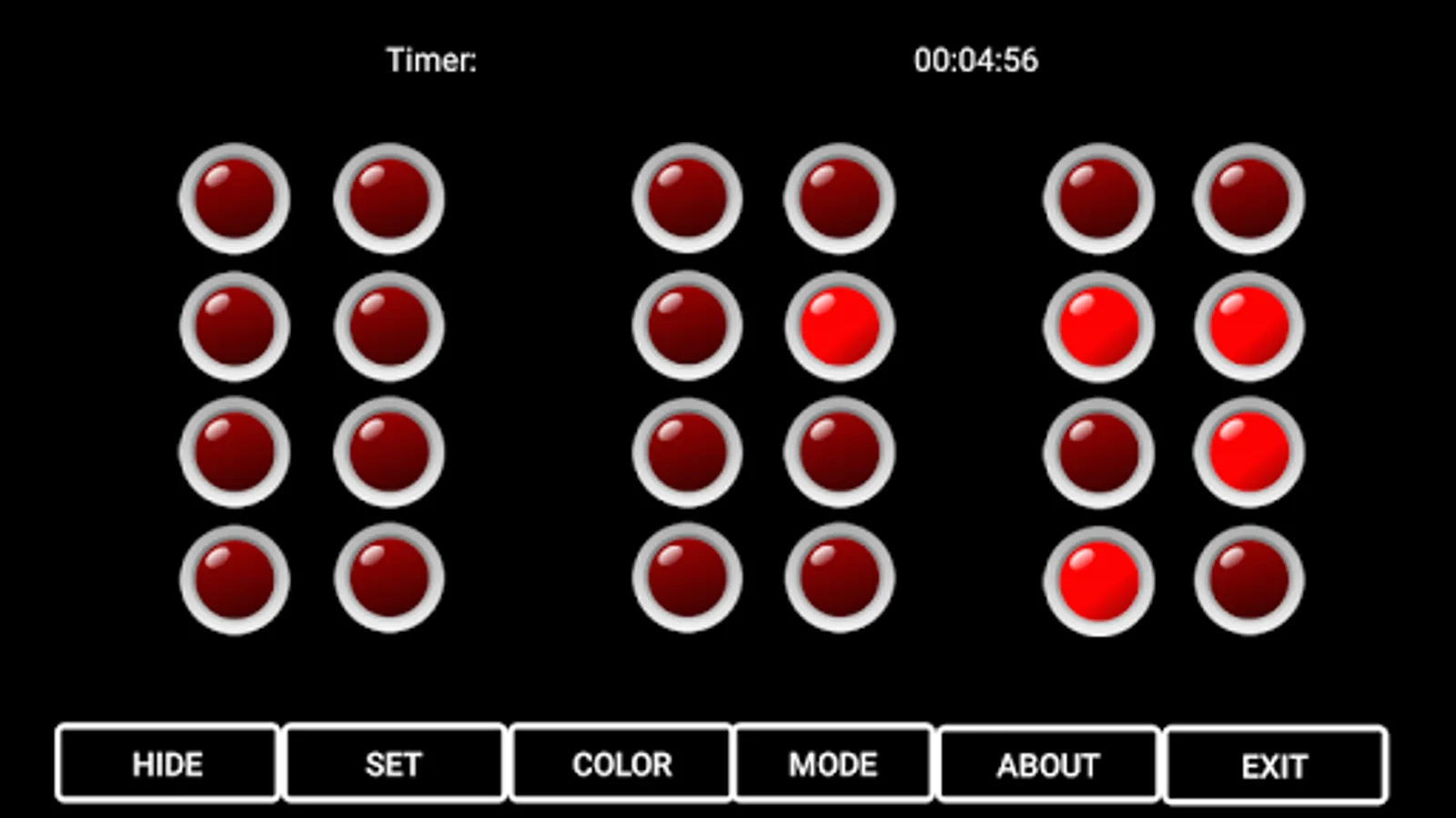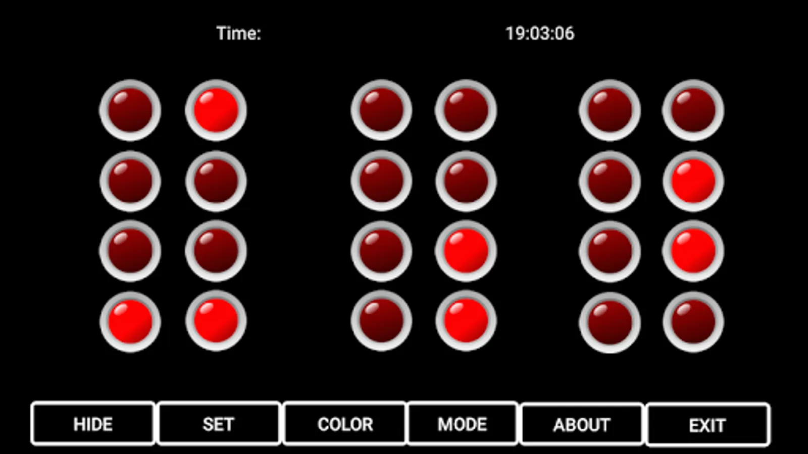 Geeky Time is as its name suggest simple time tool which uses LED diodes instead of numbers. Time is depicted in BCD (Binary coded decimal) format, it means that every column is one number (from 0 - 9).