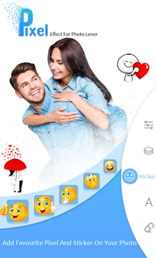 PixelDance Effect For Photo Lover your photos Male and Female smiling lips stickers which when applied on any face of any photo will make it turn into huge smiling face.