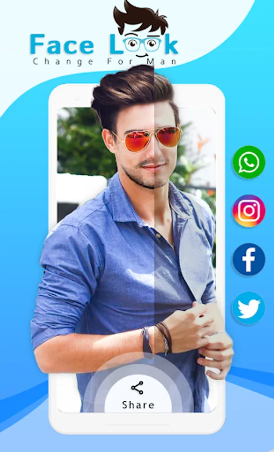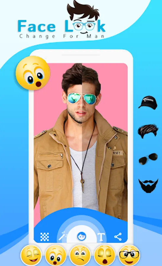 Face-Look Change For Man - Beard, Hair, Goggles is a great Face Photo and Change my look photo editor with providing too much background, stickers, status, photo effect filter, background Erase editor.