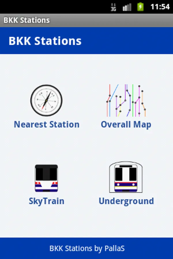 This application provides information of skytrain (BTS) and underground train (MRT) in Bangkok Thailand. The information is included maps (base on Google maps) , nearby places. This application also helps people find the nearest station with tracking function.