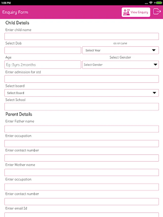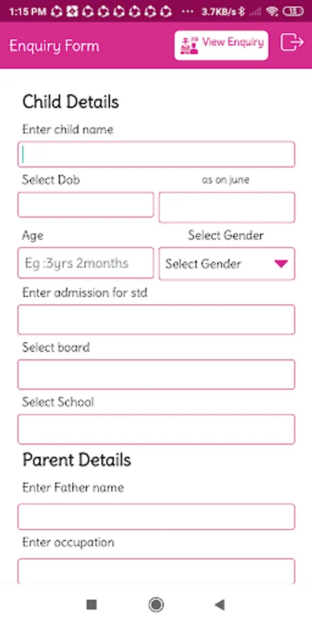 This App fetch the parents details ,who visit the institution for child admission enquiry.