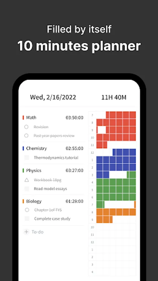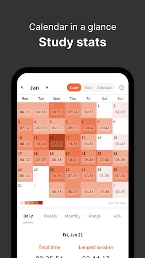 Color gets deeper as you study more. Visualize your day/week/month study records.