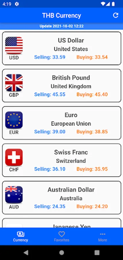 Calculate/convert currencies Foreign exchange rates against the Thai baht.