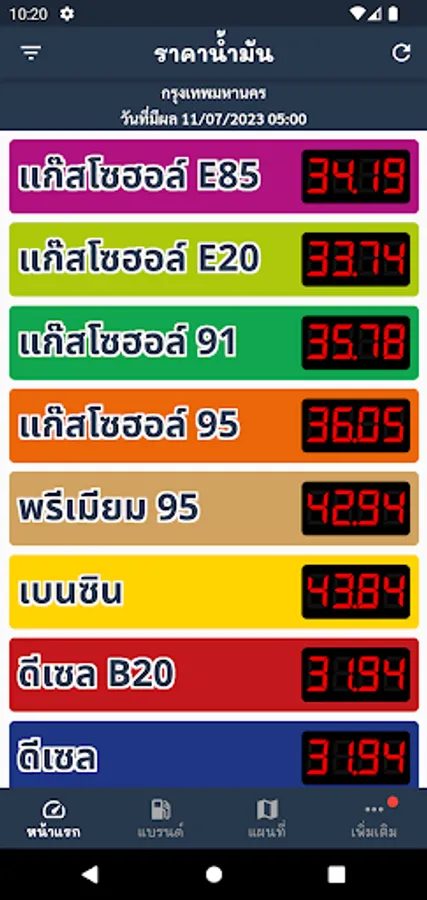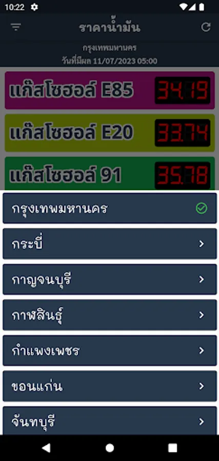Show fuel prices from Bangkok, perimeter, and other provinces